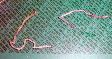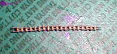 length. This photo shows that some brass rods are sticking out and uneven, so I straightened and cramped the chain with two rulers, and sanded both sides to smooth and level them. |