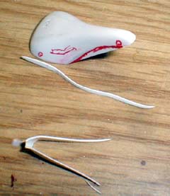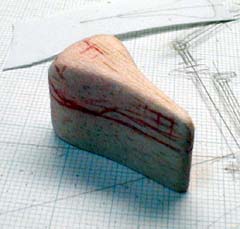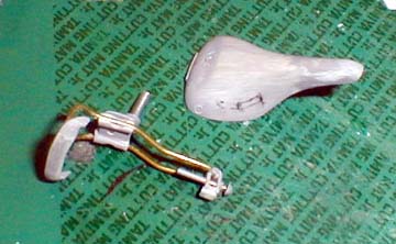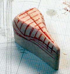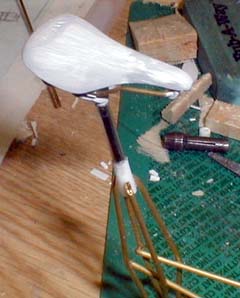 Then, I carefully sanded the rest to match the shape of the seat. The piece is symmetrical, so draw grid lines, and look at the piece from various angles to help determine how much to sand. Finished master is shown in the picture 9-2b. |