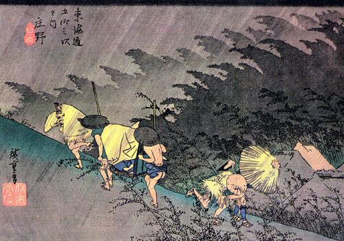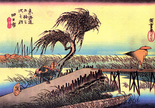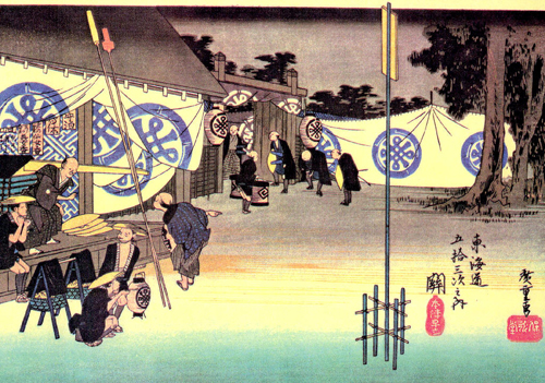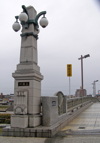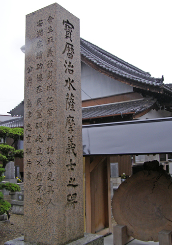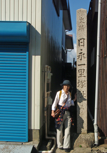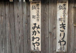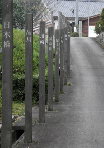 府中宿から袋井宿まではこのページに戻ってご覧下さい。 袋井宿から二川宿まではこのページに戻ってご覧下さい。 二川宿から宮宿まではこのページに戻ってご覧下さい。 坂下宿から先はここをご覧ください。 いよいよ伊勢の国に入りました。 江戸時代の旅人たちは舟で尾張の宮宿 ( 現在の名古屋市の熱田神宮のそば ) から海上7里 ( 約28km ) を渡って桑名まで来たのでしたが、私は名古屋駅から電車で桑名にやってきました。 桑名まで来れば、約500kmの旧東海道をおよそ4分の3踏破したことになります。 ここまでくれば、もう意地みたいなもので、脚が痛かろうが、電車賃がさらに一層高くなろうが、問題ではありません。 とにかく、這ってでも京都にたどり着くという執念しかありません。 ![]() 桑名から京都までは約118kmですから、1泊2日で1回25kmほど歩けば、5回で十分の筈です。 今回を含め今年あと3回だけ11月と12月に歩くと、寒い1、2月はお休みしても、3月に2回歩けばよい勘定になります。 3月の末、桜の咲く頃、京の三条大橋に着くことを目標に、がんばります。 台風20号の影響もあり、今日は予報通り朝から小雨ですが、ひるむ事なく出発。 小田原から新幹線ひかり号で名古屋まで来て、JR関西本線に乗り換え、桑名駅に着いたのが9:55でした。 桑名宿の出発点は 「 七里の渡し場跡 」 ( 上の浮世絵 ) で、駅から1.5kmです。 駅から歩いて行く途中に海蔵寺と言うお寺があります。 実は今回、ルートの情報をインターネットで調べている過程で、 このお寺に祀られている江戸時代の薩摩藩士たちにまつわる悲惨で、そして腹立たしいある出来事を知りました。 詳しいことは ぜひ、この解説を見ていただく として、このような立派な心を持っていたのに、徳川幕府による 「 外様いじめ 」 政策の犠牲になり、遠く故郷を離れたこの地で筆舌に尽くしがたい屈辱と苦労の末に憤死していった80数人もの薩摩武士たちの無念を思い、ぜひお参りしようと考えたのでした ( それにしても、これを知ると、徳川幕府がすっかり嫌いになりますね )。 ![]() なお、地元民たちを毎年の水害から救うために命を捨てることになった彼らは、近年になってようやく 「 薩摩義士 」 と称えられるようになり、岐阜県海津市の木曽三川公園脇に 昭和13年に建てられた治水神社 に祀られています。 ここには、治水工事の完成後に薩摩から 「 日向松 」 が移植され、現在では 「 千本松原 」 と呼ばるほどになっているそうです。 私は海蔵寺に立ち寄りお参りした後、七里の渡し跡まで行き、今日はここから10:40に歩き始めました。 桑名市内の昔の旧街道は一部通れなくなっているところもあり、クネクネと曲がってもいるので、下調べをよくした後、注意深く歩きます。 四日市宿までは近鉄名古屋線とJR関西本線の間を縫うように約14kmの道 ( 一里塚3つ分と2kmほど ) が続きます。 ゴアテテックスのズボンとジャンパーを着用し、小さな傘をさし、防水カバーをかけた地図をもう一方の手に持ち、首にかけたカメラで写真を撮る。 腕が3本欲しい状態です。 あいにくカメラの電池が切れたので交換していたら濡れた手が滑ってカメラが地面に落ち、レンズが1枚鏡胴からはずれて飛び出してしまいました。 屋根のある場所を見つけてこれを何とか応急修理し ( 工具もなしに自分でも大した腕前だと思います )、画像がチャンと写るのを確認するまでに30分程かかり、泣きたいような状況です。 ![]() 桑名は昔から鋳物の町で鳥居は県指定の文化財です。 鋳造で描いた模様を見てください。 鳥居の脇にあるしるべ石は伝言板に使われたと説明にあります。 右:駿河屋脇本陣跡で現在は料理旅館の「山月」の玄関にある石碑です。 この地では昔から 「 勢州桑名に過ぎたるものは銅 ( かね ) の鳥居に 二朱の女郎 」 と言われてきたそうです。 でも、こう言われると、二朱の女郎って一体なんだ ? と気になりますよね。 気になる方は下の * をご覧ください。 ![]() 「 その手は食わなの焼きはまぐり 」 という有名なダジャレの言い回しは、子供の頃から講談本などでたびたび目にしましたが、その有名な焼きはまぐりはもうほとんどお目にかかることはできません。 海岸の開発の結果、はまぐりの漁獲量は激減しているようです。 それでも、保存食に適した時雨煮 ( しぐれに ) は今でも多くの店で売られていました。 どこから運ばれてきたはまぐりなのでしょうか。 でも、一つ買い求めた品の味は、決して今風に甘いことがなく、これこそ江戸時代からの伝統の深い味わいだという気がしました。 なお、四日市の町に入る所ではこれも江戸時代から有名な笹井屋のなが餅を買いましたが、これもなかなかの味でした。 ![]() 四日市の街に着いたのは午後3時過ぎ。 カメラ修理と昼食の時間を除けば14km弱を時速3.5kmで歩いたことになります。 カホルはいったん四日市に直行したあと、桑名に戻って市内を4kmほど徒歩で観光したようです。 今日は四日市市内のホテルに