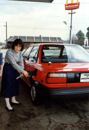 万分の一でも早く学んで欲しいものだと思いました。スタンドでガソリンを自分で入れるのも、最初はこわごわでした ( 写真 ) が、4回目くらいから、自信がついてきました。 *:subdivision とは、囲いで囲われた、中・高級住宅専用区域のこと **:pull over とは、道端に寄せること |