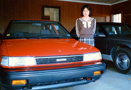 車庫入れなど5種類くらいの技能を試されます。 さあ、いよいよ縦列駐車の番です。失敗です。 優しい先生は Try again. と言ってくださるのですが、 また失敗。 更にもう一回チャンスをくださいました。 三回もやらせてくださったのです。しかし、不甲斐ない私は、またもや失敗したのです。 ああもう今回は絶対に駄目だと諦めると、ずいぶん気が楽になりました。 あとは街中を走って、交通標識や、 スピードなどが守られるかなどを試されます。 もうそろそろテストコースも終りかなと思う頃、先生は、Pull over.と申されるのです。 この意味が分からなかったのです。 Pardon me? と尋ねても、返ってくるのは Pull over(**). 私の知っているPull over. は、とっくり襟のセーターです。本当に困りました。 Pull over.とはどういう意味ですかと尋ねれば良かったのでしょう。 しかし、当時まだそんな余裕はありませんでした。 先ほどの縦列駐車ができなかったから、もうここで降りてしまいなさい、という事かな、と思って、ドアを開けて外に出ようとすると、 先生はびっくりした顔つきで、No, No, No. 入れとおっします。 こんな奇妙な行動に出る人は、多分前代未聞だったことでしょう。 ここまで失敗を重ねれば、誰だって不合格を確信します。 試験を終えて、合否の知らせがあるまで二十分くらいありました。 その間、次までにしっかり縦列駐車の練習をして、 1週間あとに再度挑戦しようと考えていました。 しばらくすると 「 カオル クマイ 」 と、アメリカ英語特有のアクセントで名を呼ばれ、行ってみてびっくり。 なんと 「 合格 ! 」 だったのです。 縦列駐車は自分でよく練習しておくように、という伝言つきで。 信じられないような気持でした。 感激です。 しかし、何はともあれ、アメリカ生活での第一難関は突破したのです。 ここで写真を撮ってもらい、20分もすると、その場で免許証が交付されました。 なんて素早い対応でしょう。