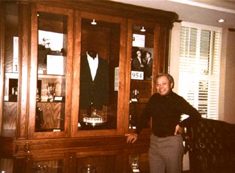 メンバーとその家族以外は一歩も足を踏み入れることは出来ません。まずダイニングルームに入り、遅い昼食を食べましたが、これは流石にやはり米国だけあって、 美味しくありませんでした。 その後、メンバーたちがくつろいで談笑している談話室に入ると、 数々の記念すべき写真や品々が飾られています。 深々とした安楽椅子に坐り、 何枚も記念の写真を撮ってもらった後は、順に部屋を回って見学です。 一番面白かったのは、歴代の優勝者たち専用のロッカールームでした。 そこには眩しいような名前が一つ一つの扉に付いていて、鍵のかかっていない扉を開けると、