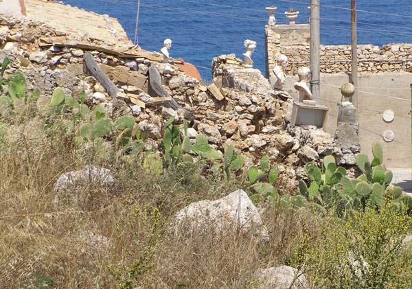 ![]() 2008年6月のある日、私はシチリア島最南端 ( ということは、イタリア最南端 ) の岬 「 カーポ・パッセロ ( Capo Passero ) 」 *1 にいた。 ここは緯度的には北アフリカのアルジェリアの首都アルジェよりさらに南に在る。 周囲には殆ど何もない。 数 km 離れた街には商店も銀行も、小さなホテルさえも有り、おそらく数千人は住んでいるだろうが、岬の周辺には殆ど何もない。 この地方はイタリア料理に不可欠なサクランボ大のパキーノ ( Pachino ) トマトの主産地であると同時に、昔からマグロ漁の盛んな土地でもあった。 *1こんな、イタリアの 「 僻地中の僻地 」 に、ハイヤーを何時間も飛ばして私がやってきた理由はと言えば、昨年ローマ郊外のオスティア・アンティーカにある美しい宿に2泊した際、オーナーのマッシモ・チェンチ ( Massimo Cenci ) 氏と仲良くなったからである。 彼はこのカーポ・パッセロの岬の付近にも昔の貴族の別荘を改造した豪華な Villa Bruno di Belmonte というリゾート*2 を所有していて、パソコンで開いたそのホームページの写真を私に見せながら 「 来年はぜひここに泊まりに来い 」 と、その時誘ってくれたのだった。 *2すでに8日間シチリア各地をめぐり、前日までアグリジェントで神殿群や考古学博物館を観ながら2日間を過ごしていた私は、この日、贅沢にも*百ユーロを払ってハイヤーを1台雇い、朝8時半に出発して途中ジェラ ( Gela ) やラグーザ・イブラ ( Ragusa Ibla ) などの歴史の古い町をゆっくりと観光しながら、このカーポ・パッセロに夕方5時頃着いたというわけである。 途中、英語の出来る運転手が 「 お客さんは何でまたあんな辺鄙なところに行くんだ。 あそこには何もないですよ。 貴方は刑務所に入りに行くようなもんだ 」 と、私をからかい、脅かした。 *3運転手があちこち迷った末、漸くのことで辿り着いたこのヴィラでは、汗臭い黒のTシャツ姿で色黒のアンジェロ ( Angelo ) とサルヴァドーレ ( Salvadore ) という30歳すぎの二人の兄弟が私を待っていた。 通された部屋は真っ青な地中海が目の前に180度広がる200u ほどの青いタイル敷きのテラス*3 の付いた、このヴィラでは最高の部屋 ( 私は一番安い部屋の料金しか事前に払い込まなかったが、きっとCenci氏の好意だろう ) で、面積は都心の最高級ホテルのそれの2倍以上、100u は優にあるだろう。 もちろん、ベッド*2 や家具は豪華な年代物だし、大理石の浴槽、トイレ、ビデも付いている*4。 *4だが・・・本当に周囲には全く何もない。 散歩がてら1時間ほど歩いてみたが、紺碧の海*3 と、ところどころにフィキディンディア ( Fichidindia ) #1 が自生している荒涼とした砂地と、すでに崩れきった遺跡と、人が住んでいるのかどうかさえも怪しい幾つかのあばら家と・・・だけである。*5 車は時々通るが人どおりなど、全くない。 *5ここで私は、広いテラスに持ち込まれた快適なデッキ椅子に横たわり、地中海の紺碧 ( いわゆる Azzuro ) の海面の潮目*6 の動きを眺め、写真に撮る ( 実際、この写真のような鮮やかな色をしている )。 新井豊美の 「 シチリア幻想行 」#2 をもう一度読み直す。 そして、なぜかこのシチリアとは全く縁もゆかりもない藤沢周平の文庫本を持ち出したりもする。 そうこうしていると、あの汗臭いTシャツを真白なジャケットに着替えたサルヴァドーレが大きなグラスに入った甘く冷たいアーモンドミルク ( Latte di mandorla ) を恭しく運んでくる。*7 彼と手真似を交えて片言のイタリア語で意思疎通を図ろうとするが、なかなか難しい。 こんな事の繰り返しを私はあしかけ3日間やっていた。 ここには電話もないし、TVはあるけれどサッカーくらいしか分からないから一度も点けなかった。 *6 *7ふと思いついてサルヴァドーレを呼び、彼のオンボロ自動車に乗せてもらって約7km 離れたマルザメミ ( Marzamemi ) という漁村に行く。 そこにはアデルフィオ ( Adelfio )*8 という名のマグロ ( やイワシやトマトやアーモンド ) の加工食品のメーカーの直販店があって、広いガレージ風の店内にはこれらの珍味の袋詰め、瓶詰め、缶詰がたくさん並んでいる。*9 この店は私が日本で買った本にチラッと紹介されていたのだ。 *8そのページを若い主人に見せると、写真とローマ字の店名、住所などは理解できたので彼は大喜びし、そのページをぜひコピーさせてくれと言う。 一方、私は手当たり次第棚に並んだ珍味を買い込んだ。 彼が案内してくれたマグロの冷凍庫*10 を見た後、ふと外を見ると、彼が経営する広いが質素な大衆食堂が道の向い側にあった。 「 今日の夕食はここで食べようか 」 とサルヴァドーレに言うと、主人に話して割引価額で食べさせてくれることになり、8時からの席を予約した。 *9 *10まだ明るい7時50分、今度は兄のアンジェロの運転する車で夕食に向かった。 ところで、彼らの車は一度だってガソリンが満タンだった事がない。 1リッター1.5ユーロ ( ¥250 ) もする高いガソリンを50リットルも買う事など、貧しい彼らには到底