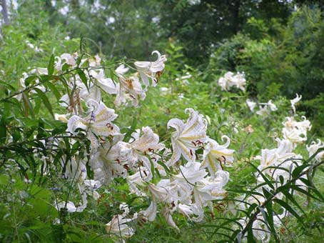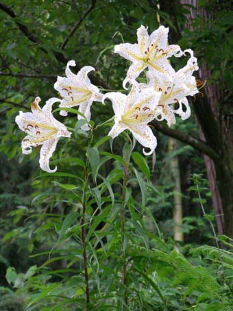 そばに近づくのは、草むらに潜むまむしに噛まれるかも知れず、少々怖い思いでした )。百合根 ( ユリネ ) つまりユリの球根を、懐石風和食などの素材として我々は珍重して食べますが、 イノシシたちにとっても美味しいらしく、私の家の近くでも、秋には、 せっかく来年はもっと数を増やそうとしている百合たちの球根を掘り起こして食べ荒らします。 文献を参照すると、食用になるのは、ユリ科ユリ属のヤマユリ、コオニユリ、オニユリの球根だけだそうです。 ユリには多くの種類がありますが、 他の種類の球根は苦くて食べられません。 ユリネを食用にしているのは日本と中国だけだと言われます。 日本でいつ頃からユリネが食べられていたかよく分からないそうですが、 畑で栽培されて一般に食べられるようになったのは17世紀 ( 江戸時代 ) からだそうです。 大きなユリネを作るためには大変な手間がかかるそうで、