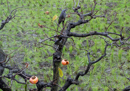わが家の裏の柿の木に、今年も沢山、実がなったのですが、高いところに生ったのものは、このご老体では危なっかしくて採取できません。