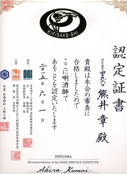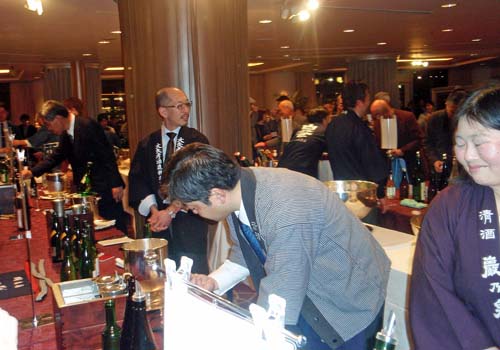 ひと様のお世話にならずに何とか毎日を生きる事が出来ています。私は3年前の5月に「 8020 ( ハチマルニイマル ) の達成 」 という文章を書きましたが ( 8020とは、 80歳になっても、自分の健康な歯が20本以上在るように努めるという運動です。 健康な自分の歯が20本あれば、なんとか満足な食生活が送れるのだそうです。 私は実際は8026でした )、 カホルは8020どころか8028で、いまだにほとんど虫歯のない28本すべての永久歯が健康な歯ぐきの上に揃っています。 私ども夫婦は少なくとも最近20年ほど、歯も歯ぐきも痛くなったことなどなく、それでも毎年春には歯科医のところに定期点検と補修清掃 ( もし必要なら ) のために出かけてゆきます。 昨年は、まず私の歯と歯ぐきを調べた歯科医が 「 熊井さんの歯は死ぬまで全部このまま健在でしょう 」 と言いました。 彼が私が何歳まで生きると仮定してそう言ったのか、 聞き落としましたが。 次にカホルが診察してもらったら、歯科医は 「 奥さんの歯と歯ぐきは、ご主人のに輪をかけて立派ですね。 115歳になったら2本くらい抜けるかも知れませんね 」 と言いました。 幸せなことです。 日頃の 「 適切な手入れ 」 の賜物です。 僅かなお金と強い意志と多少の時間さえあれば、すべての人とは申しませんが、多くの人がこの幸せを得られる筈です・・・でも、 そうなったら日本中で多くの歯科医たちが路頭に迷うかもしれません。 もう15年ほど前から、選ばれた上等の日本酒を毎回数種類賞味できる夕食会に、私は毎月1回通っているので、 そこで飲んだ日本酒だけでも、累計300種類ほどになります。 でも、つい2年前くらいまでは、何も考えずにただなんとなく飲んでおしゃべりして帰ってくるだけだったので、 今考えると随分無駄な勿体ない時間を過ごしてしまいました ( この会は、日本酒を味わうことが目的の会ではなかったので )。 それが、2年ほど前から、急に興味が湧いてきて、自分で選んで買った日本酒を酒温や酒器や肴を変えながら* 毎晩じっくり味わうようになりました。 それまで永らく続けていた白ワイン漁りがバッタリ止みました。 以来、日本中の蔵元の中から 「 これは 」 という酒を種類を選んで買い求めるようになり、 この2年間に味わった日本酒はおよそ100種類くらいになります。 *:これらを変えるたびに、同じ酒なのに香りや味が驚くほど変わります。 毎晩2合ほど飲み続けていますが、幸い肝機能は正常です。 日本酒は、最近急速に、日本国内でも諸外国でも静かなブームをひき起こしています。 ウィスキーに押されワインに煽られ焼酎に圧倒されて、1970年代前半をピークに、 生産、販売とも衰退の一路をたどってきた日本酒でしたが、最近十数年、先駆的な蔵元の若い意欲的な造り手たちによる製造技術の改善、品質の急速な向上、種類の多様化に伴って、 日本国内はもちろん、海外での和食ブームに乗って世界中の高級な和・洋レストランで食前酒、食中酒として広く供されるようになってきているということをご存知でしょうか。 それどころか、アジア諸国や北米は勿論、欧州の一部の国々でも、日本の蔵元で修業したガイジンたちが、母国に戻って 「 本物の日本酒 」 を造り始め、 ビジネスを成功させつつあります。 NHKの朝ドラの 「 マッサン 」 みたいな人たちが世界のあちこちで生まれてきているのです。 というような経緯の中、ふとしたことがきっかけで、今月、生まれて初めて 「 神奈川の酒を楽しむ夕べ 」 という日本酒の催しのために、 わざわざ横浜の大きなホテルまで顔を出すことになりました。 いい年して酔狂な ( 文字通り! )と言われそうですが・・・200人ほどの人が大きな部屋いっぱいに集まり盛会でした。 ![]() 感想 : 伝統的な古来の技法も学び直しつつ、上質な 「 本当の日本酒 」 を復活させようという全国的な機運は、本県内13の蔵元にもすでに漲っており、 一部の先駆的な蔵元に 「 続け! 」 とばかりに他の蔵元もそれぞれ真剣に取り組み出した最近の成果が実って、 どの蔵元でも 「 立派 」 な酒が造られるようになって来たと思います。 私の味覚能力が不十分なためでしょうし、各蔵元が皆 「 これぞ 」 という 「 純米吟醸 」 系の自信作ばかりを出品しているためでもありましょうが、本当に違いが分かりにくく、 皆レベルが高くて美味しい。 生意気を申してすみませんが、次は画然と個性の際立つ 「 新しい日本酒 」も、この地域で創られる事を期待しています。 また新しい年が始まり、そして早くもひと月が終ってしまいました。 お正月には今年も子と孫全員が集まってくれ、私ども2人も何とか健康な様子を見せてやることができました。 私は新年早々、恐らくこれが生涯で最後と思われる 「 人間ドック 」 を受けました。 80歳を越えてもなお人間ドックを年に一回受ける必要があるのか ・・・もう平均寿命も過ぎたことだし、どうせあちこち少しずつ具合が悪いのだし、どこか悪くなったらその都