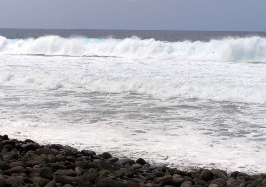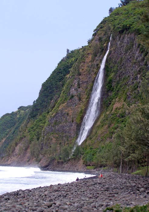 高さ190mのカルアヒネ滝が直接海に注ぎこんでいる。 この滝の一番上の方から降りてきたのだ。