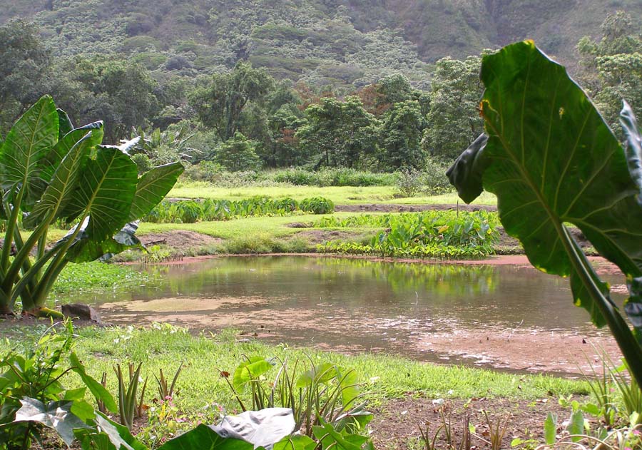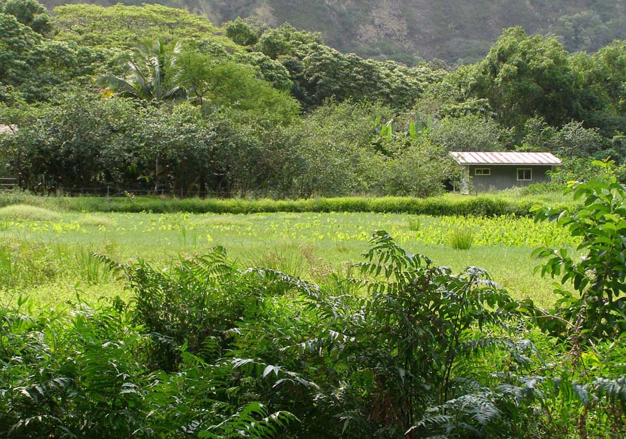 まだ数軒、人が住んでいる家が在る。 湿地でタロ芋などの栽培をしている。