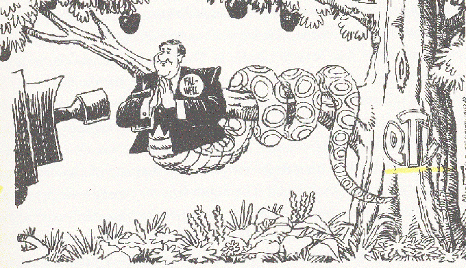 「 主をほめたたえよ 」 ( Praise the Lord ) という番組に出ていたが ( リンゴの樹にはPTLのロゴ、左にTVカメラが有る )