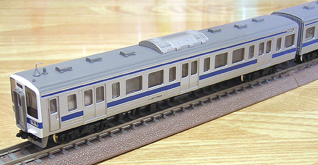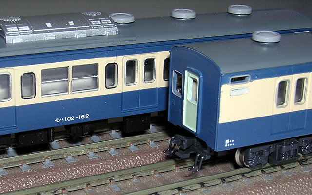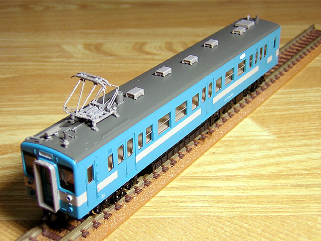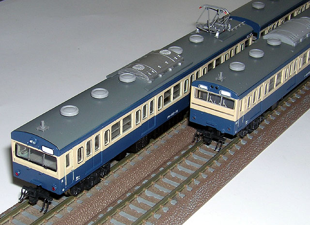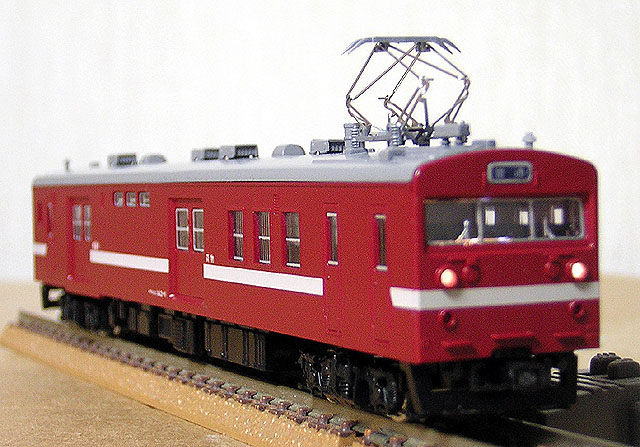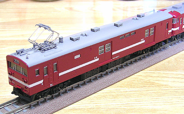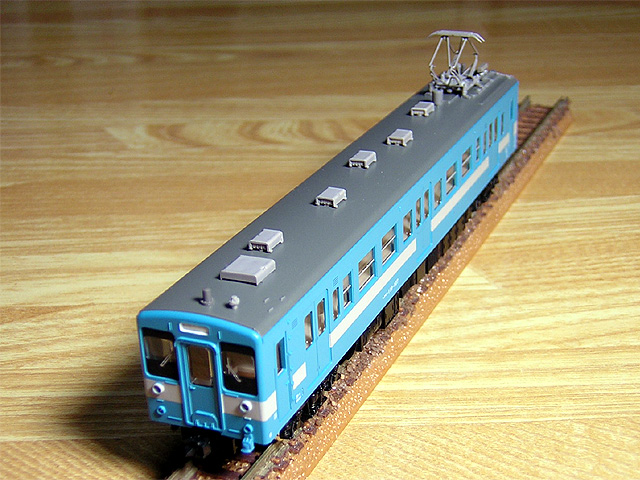 | 115系3000番代 | 有井 | 8両セットの先頭2両だけを調達し、冷房準備化。クーラー蓋はプラバンで自作。 信号炎管はKATO製に交換、アンテナ撤去跡はすべり止め塗め塗装でごまかした。 種別幕窓も引っ込んでいる上に変な色で光るので、撤去して透明塩ビ板(裏から白塗装)をはめ込み。 ワイパーは動かしたら途中で止まりそうな形なので、パーツに交換した。先頭部アップ 中間の111系ユニットも製作中 |