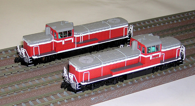 | DD13タイプ | KATO | 京葉臨海を塗り替え。朱色4号は少し赤味を強くしてみました。なかなか良い色でしょ? ジャンク品を活用して2両で3000円と格安です。 思ったより塗装が綺麗に決まってしまったので、もったいなくてウェザリングはしばらくお預け |