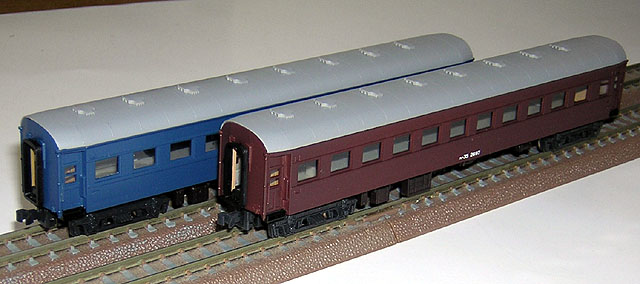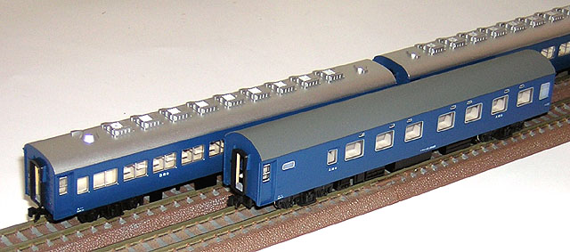 | オハ50系 | TOMIX | 色差しと標記でずいぶん見栄えがします。 最後部車以外はテールライトを抜いてあります。 |