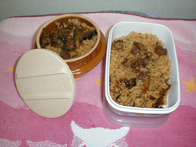 ただの丼によそってはつまらないと思い、釜飯の釜に入れてみた。もうひとつは冷ましてから食べるためタッパーに。