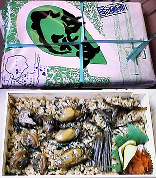 この「かきめし」という駅弁、実にうまい。風味抜群でプリプリしているカキはもちろん、