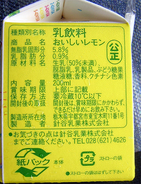 こちらは関東牛乳と並ぶ宇都宮のローカル乳業「針谷乳業」の「おいしいレモン」