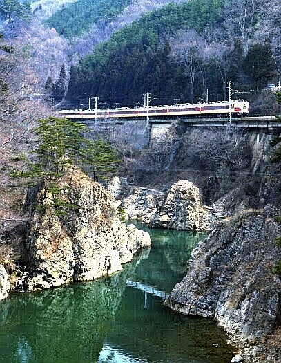 昭和55年3月水上駅付近の渓谷を行く183系「とき」