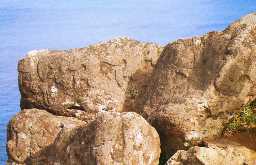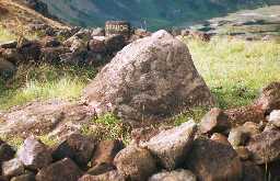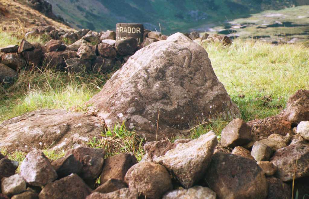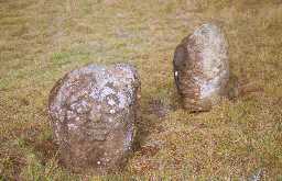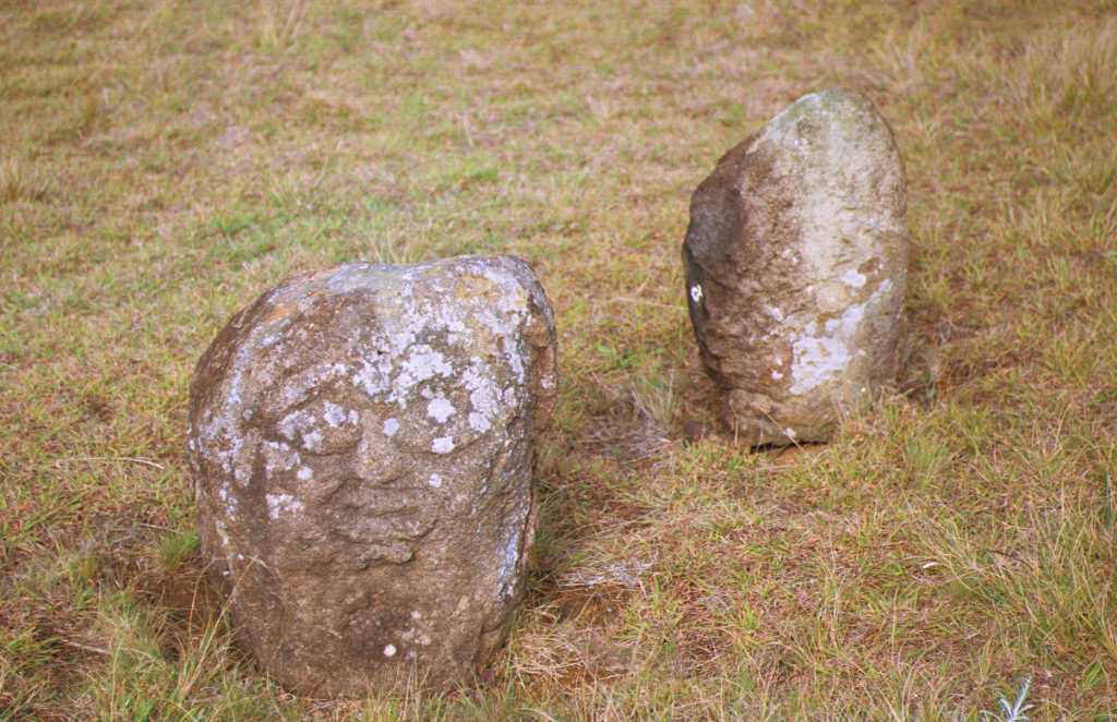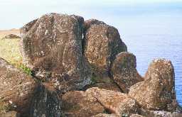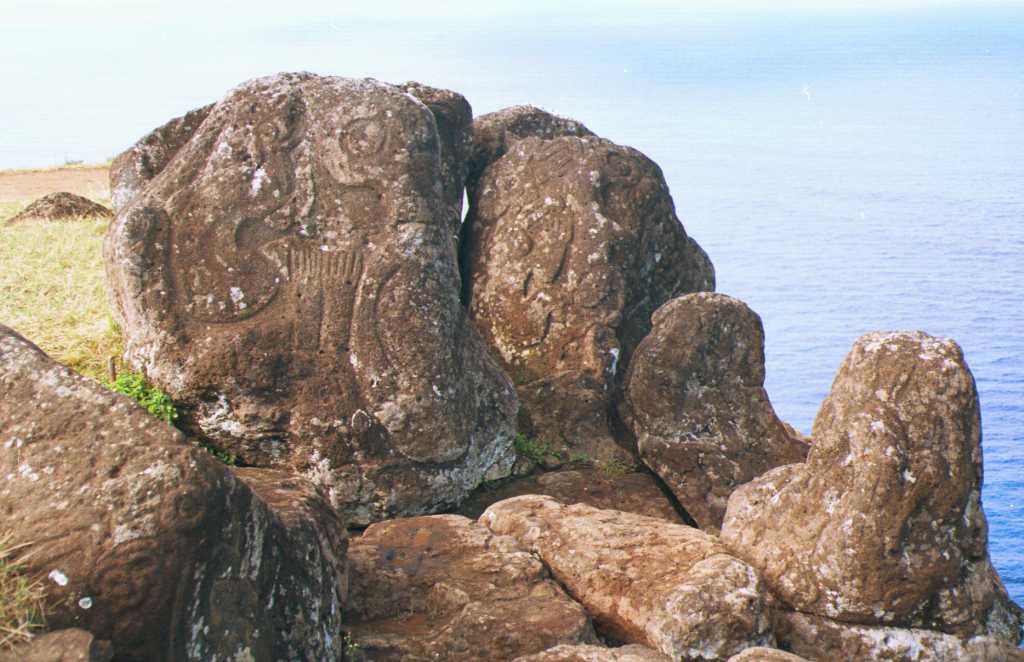 | オロンゴにある石にはどれも顔や鳥人などが描かれている。 |
