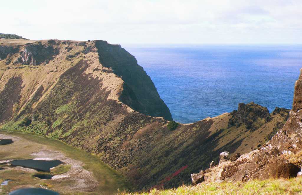 | ハンガロア村の近くのカルデラ湖。これのかげで、あまり水不足にならない |