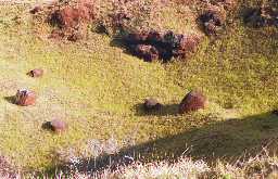 転がっているのはすべてモアイの帽子(プカオ)です。