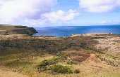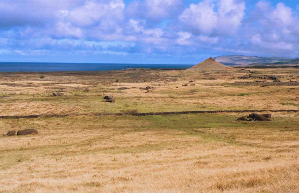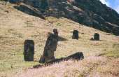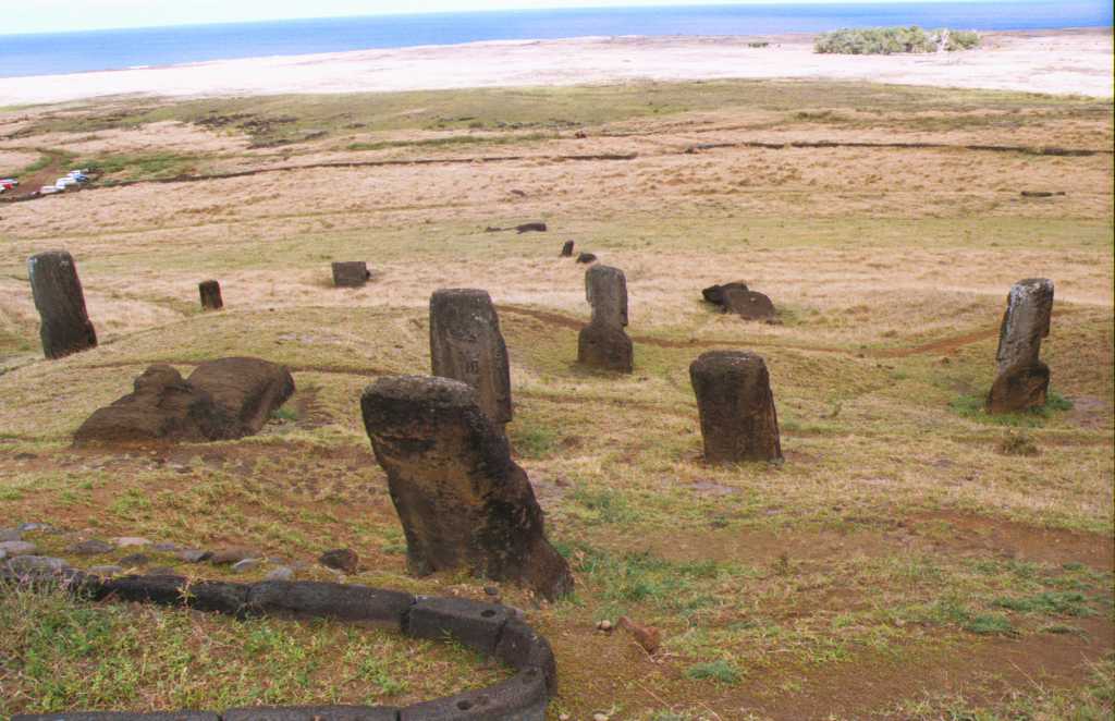 ラノ・ララク山から見るトン ガリキの15体のモアイ |