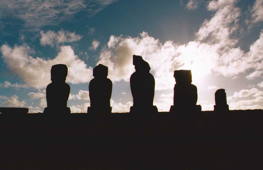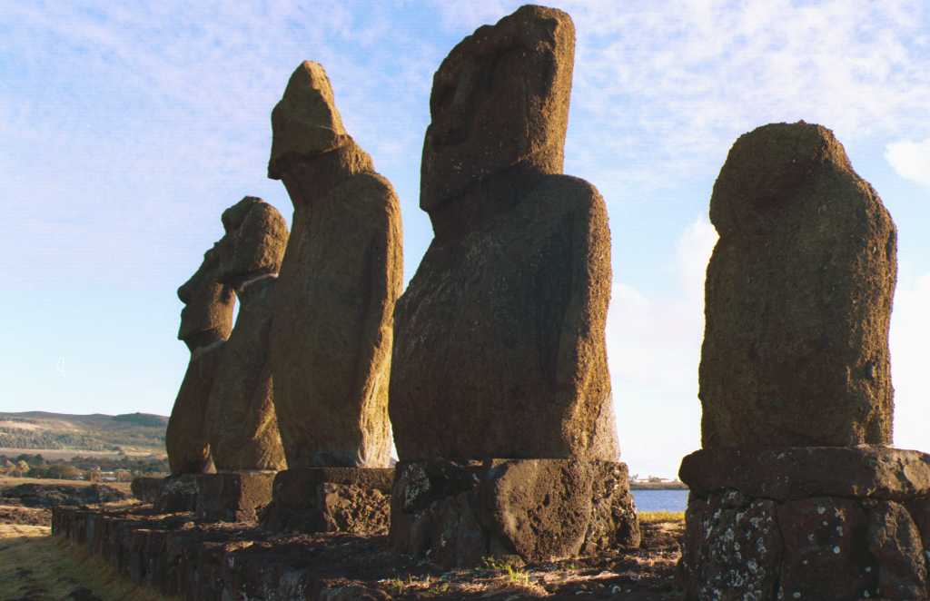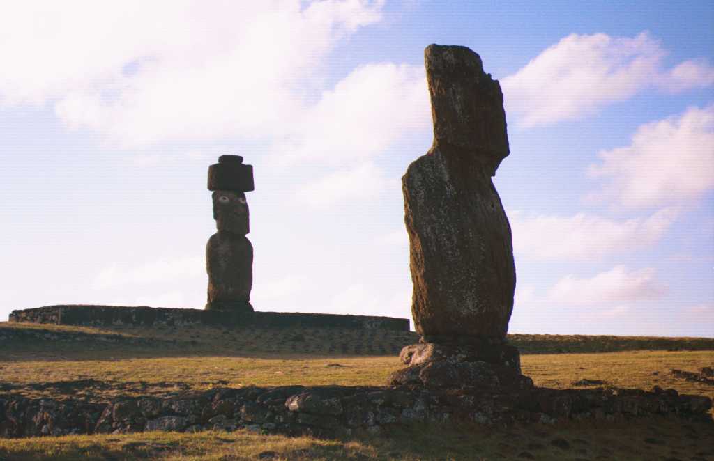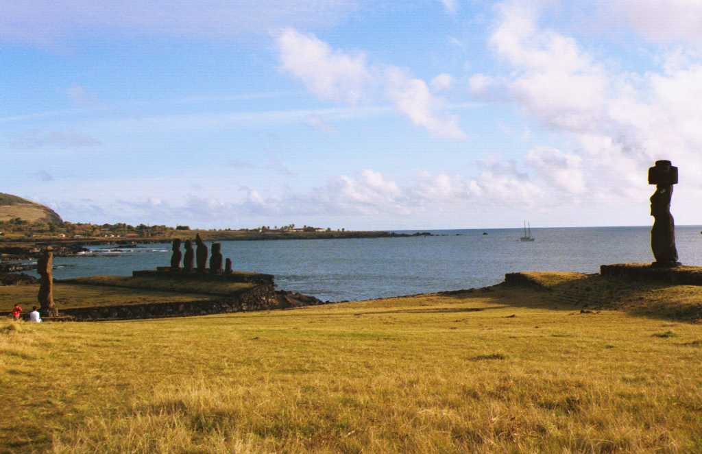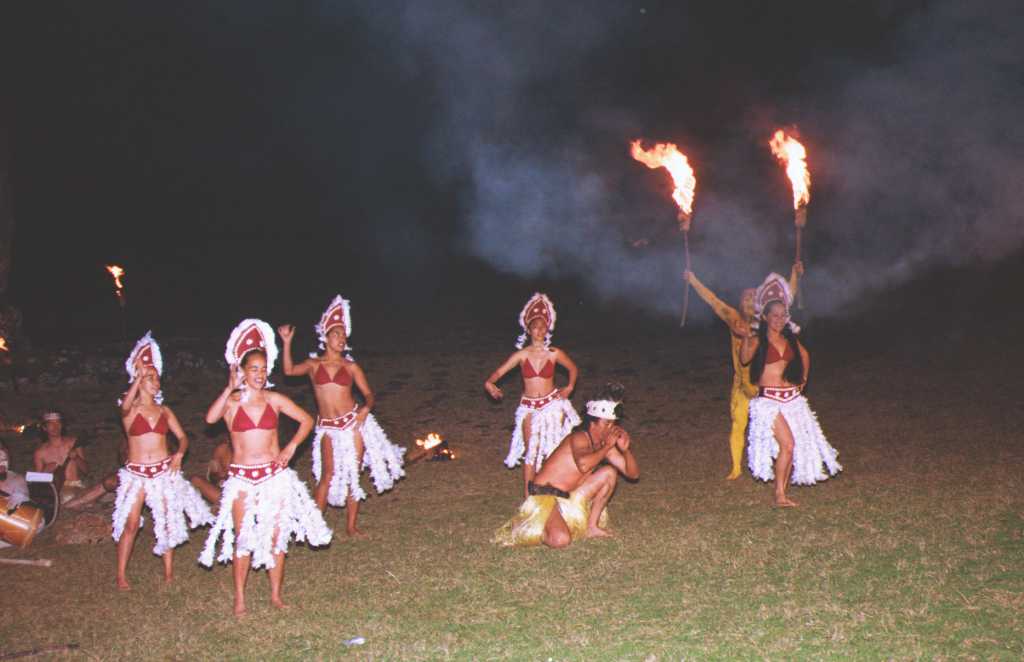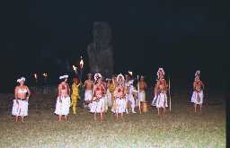 | タハイのモアイの全景 | 手前のモアイの前で夜に踊りが踊られた | |