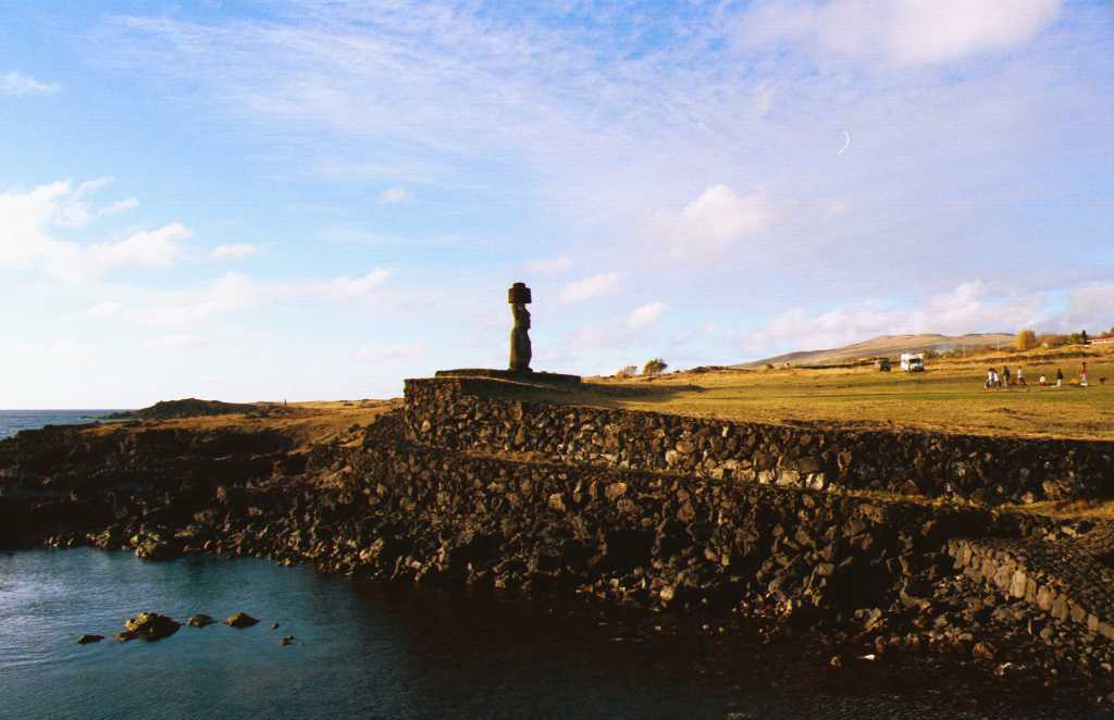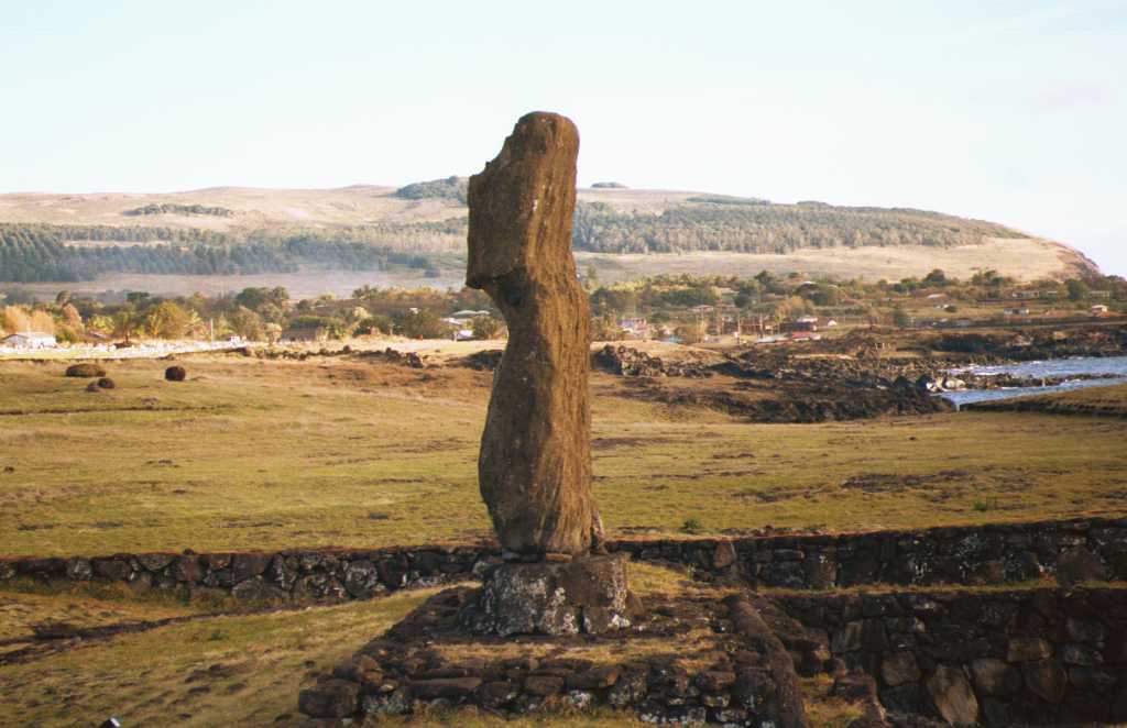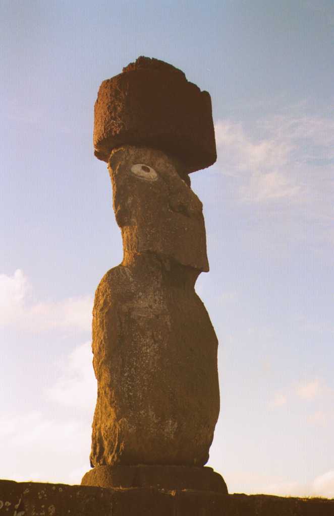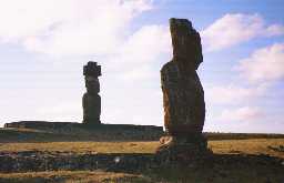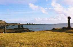| このモアイの前で踊りがあった | 目のあるモアイも海岸沿い | |