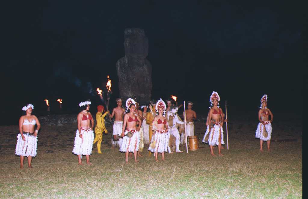 に、モアイの前で儀式の踊りのようなものをやっていました。どこか(チリ?)
