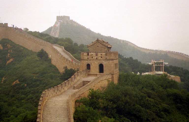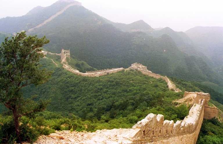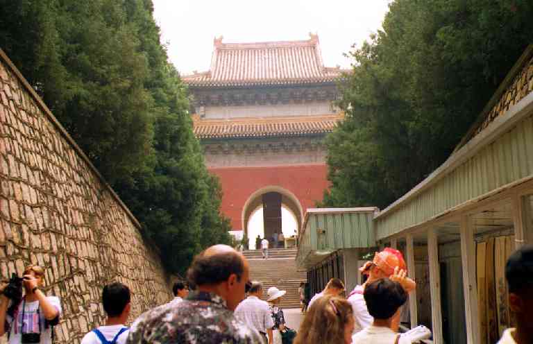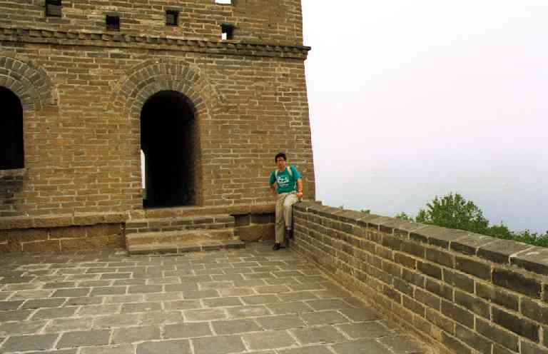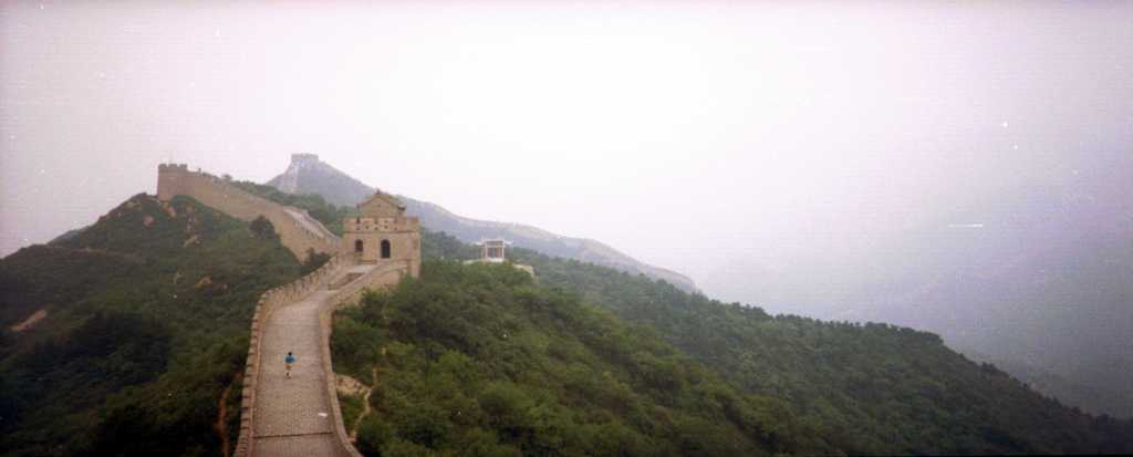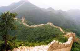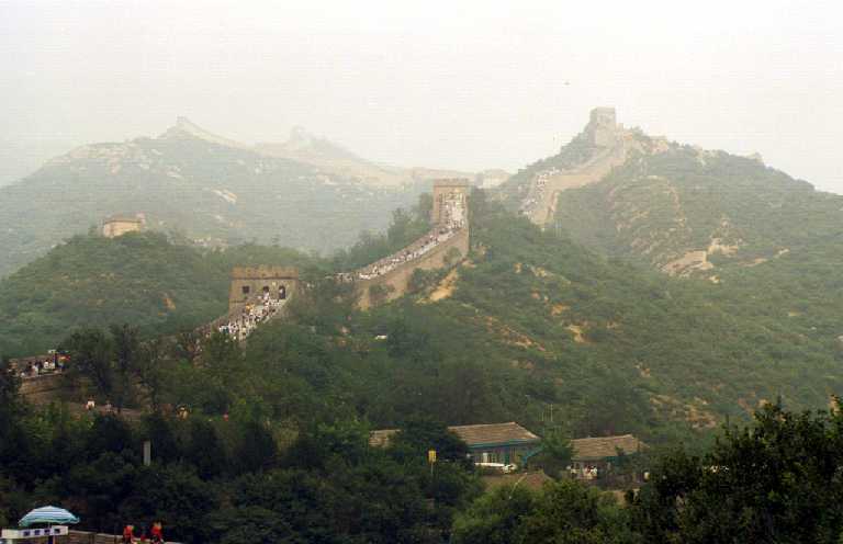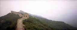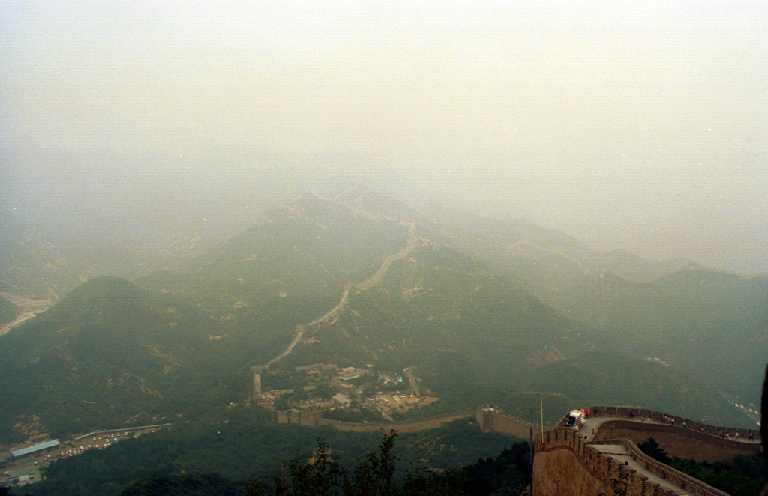 北京郊外の八達嶺付近の「万里の長城」です。ここはさすがに観光地で、外 国人(日本人を含む)だけでなく、中国の人々もかなり多く観光に来ていました 。おみやげもの屋さんも多数有り、特に長城の上でもTシャツ(当時、日本人を 見ると10枚千円と声をかけていた)やテーブルクロス(刺繍入り)などを、売 っている屋台がいっぱい出ていました。