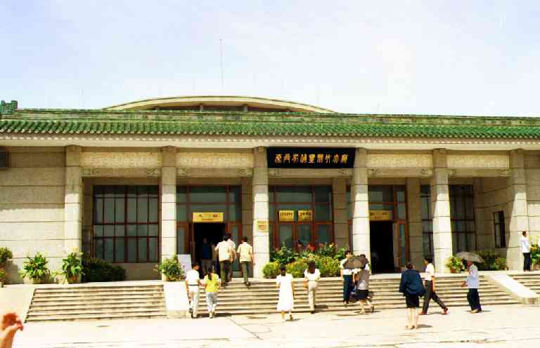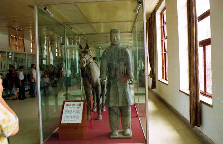 西安はシルクロードの起点です。兵馬俑坑博物館や秦始皇陵(写真なし)が あります。なんか、とても遠くまで来たという感じでした。道ばたで、西瓜を山 のようにして売っている露店を数多く見かけたことを覚えています。兵馬俑坑博 物館は本当に凄かったです、写真で見るのとはスケールが違い、改めて秦始皇の すごさをも感じてしまいました。