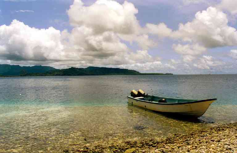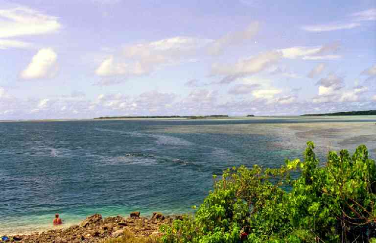 | 向こうに見える陸地は、ナンマドール島。 | ||