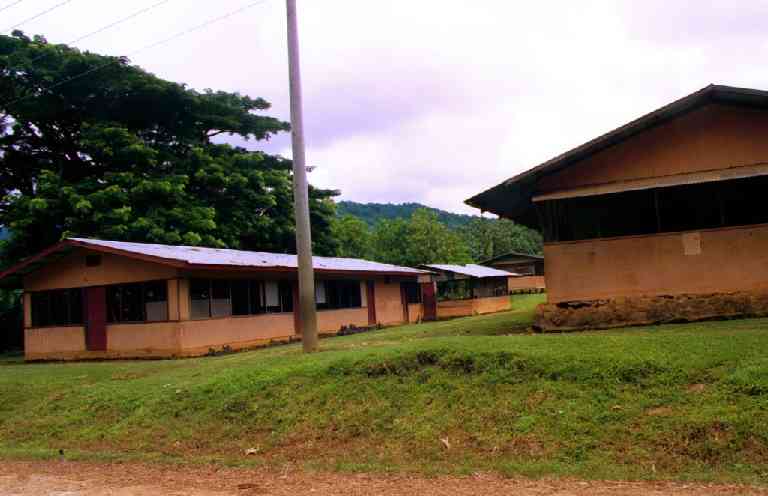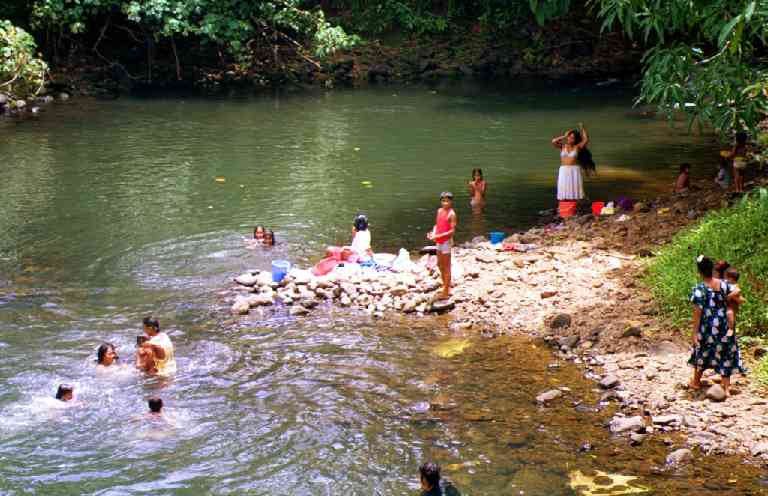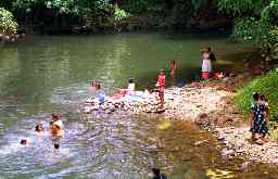 | 小学校(生徒数約250人) | 川で洗濯しながら遊ぶ人々。 |