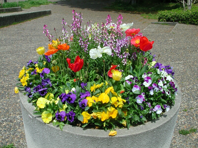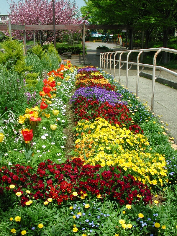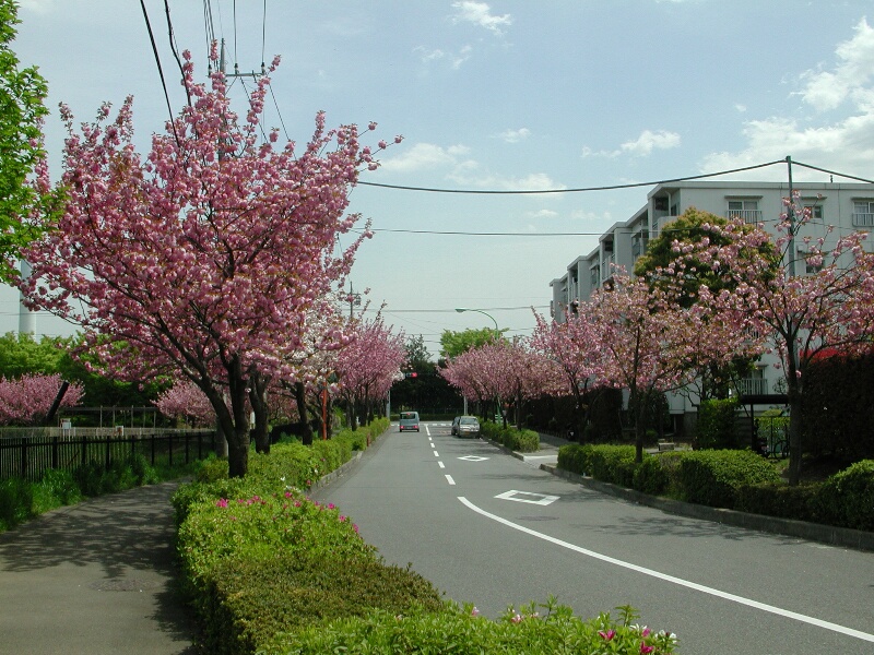 桜台の花 2005.04.23 世間の桜が散って2週間後、桜台の八重桜が満開になる。 華麗な花だ 遅咲きの枝垂れの薄い緑の葉が美しい 天気の良い土曜日なので公園でお弁当を広げる人もいる 桜台入り口公園の車止め よく手入れされた花壇は一年中花が絶えないが、この時期が華やかだ 早咲きのサツキ。小降りだが鮮やかな色だ。 やや遅咲きの辛夷 END