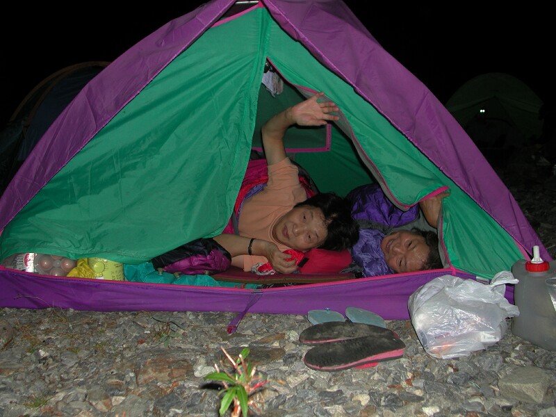 テント山行初体験の叔母達。もっともキリマンジャロではポーターが運んだテントに寝たことはあるそうだ。