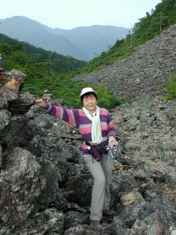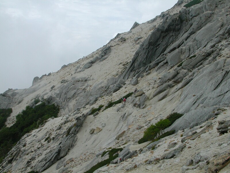 十数年前に来たときはガレ場の中央を突っきるルートだった。現在は灌木の生え際を歩く。