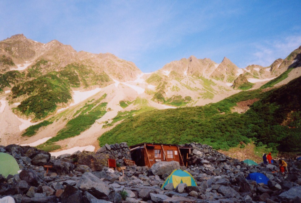 涸沢からの下り。左は新村橋。右は横尾。 2000.8.9撮影