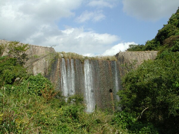 五助ダムの堰堤である。手前に休憩適地あり。この堰堤の上部は平らできれいな水流があちこちに流れている。