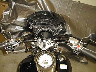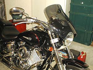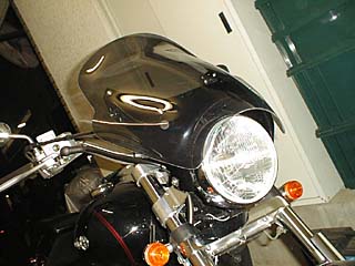 アメリカンはハンドルにメーター類がついていないうえに、ヘッドライトが小振りなものが多いので、前方の視界に開放感があって良いのですが、高速走行時は直立に近い姿勢の上半身に走行風がモロにあたるので、非常につらいものがあります。一番簡単な解決策は、シールドをつけることですが、アメリカン用のシールドは実用本位に作られているものばかりで、カッコイイと思えるシールドがないのです。