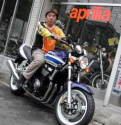 車体がとてもデカく感じる。またがっただけでもてあましそうな予感。でもこいつのエンジンは「すごい」。下からパワフルすぎてちょっと怖い。さらに、スロットルをほんのちょっ と開けた状態のコントロールがめちゃくちゃ難しい。ドンつきってやつですね。コーナーリング途中パーシャル状態のキープが思ったようにできなくてギクシャクしまくった。やっぱりこいつはコーナーリングより直線で気が遠くなるようなスピードを楽しむためのバイクなのだろう。アップハンドル仕様車も用意されていたが、時間切れで乗れなかった。ZX−9R