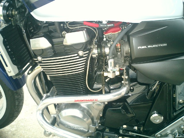 中松さんの南国沖縄仕様GSXです。なんとキャブレターがついています!燃料ポンプをキャンセルしたり、ECUを騙したり、いろいろと苦労されていることと思います。加速フィーリングなどのお話も含め、是非そのあたりを伺えたらいいな、と思っております。メールお待ちしております。