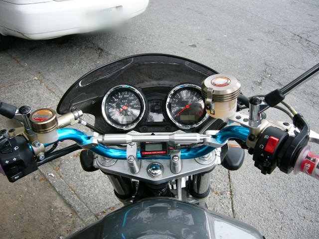 改造点:ビキニカウル、ハーディーUPハン、マスターシリンダー、クラッチマスター、グリップ、吉村テンプ、バーエンド、フェンダーレス、STRIKERマフラー、イリジウム、前後ブレーキメッシュ、アクセルワイヤー(ワンオフメッシュ)、クラッチメッシュ、ZOIL添加剤、神戸ユニコーンリミッターカット