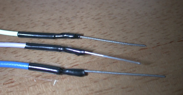 はんだ付けの後、熱収縮チューブでショートしないように保護します。