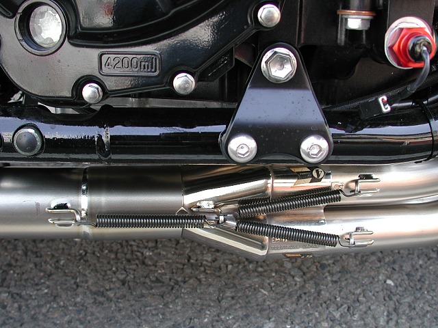 センタースタンドだけで3Kgほどあるので、結局スタンドをつけるのはやめました。メンテナンス等でどうしても必要なときは、スプリングを取り付けないでスタンド金具だけを取り付けることにします。で、終わったら外すということにしました。