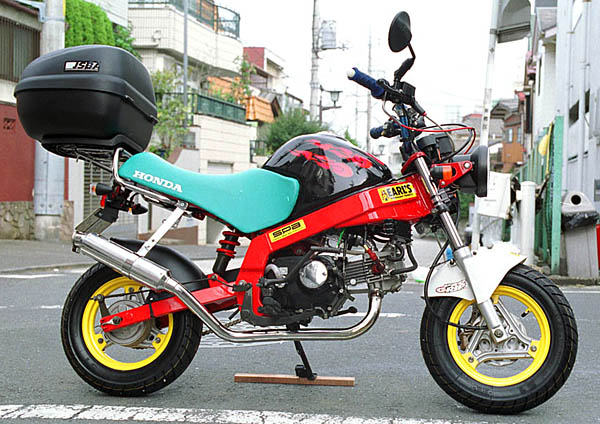 キタコのオイルクーラー、オイルキャッチタンクつきブリーザーホース、デイトナのデジタルタコメータ、タカガワのホワイトパネルスピードメーター、2灯式テールライト、デンソーイリジウムパワー(IUF24)、モンキーR用フロントフェンダー、モンキーR用リアフェンダー、デイトナ強化クラッチ&スプリング、デイトナ強化オイルポンプ、アールズのステンメッシュブレーキホース、フレームとタンクおよびホイールをウレタン塗装、GIVIのトランクボックス(ハイマウントブレーキランプ付)