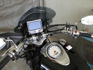 せっかくなので、タンクバックではなく、ヘッドライトケース上に取り付けたいです。なんとか振動を逃がす工夫をこれから考えようと思います。CD-ROMではなく、メモリーカードに地図データをもった音声ルート案内のできるナビがあれば解決するのでしょうが、画面表示が充実したものがないんだよなぁ・・・・