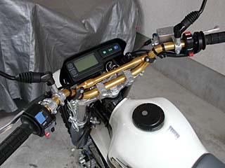 もうひとつ、ハンドルに2箇所ドリルで穴(スイッチボックスとキルスイッチボックスのボスがはまる穴)を開けなければなりませんが、その位置は現物を仮止めして実際に跨ってハンドルを握ってみないことには決まりません。これをきっちり決めるのも意外と時間がかかります。