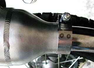 銅板をつけた状態でマフラーを組み、エンジンをかけてみましたが、結局排気ガスが漏れているのは変わりませんでした。サイレンサーの根元は締めつけリングでパイプが締めつけられるようにスリットが入っています。そのスリットの長さが意外と長く、そのスリットの隙間から排気ガスが漏れているようなのです。