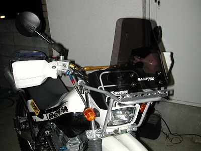 近いうちに、アルミのベースのあいている所を使って、ガーミンのeTrek用のホルダーと、フォグランプを取りつけようと思っています。ハンドル周りがどんどん重くなるぅ・・・