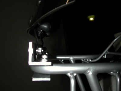 シェルパネットワークの福田さんもラフ&ロードのシールドを付けておられましたが、これがまた実にスマートに取りつけてありました。パイプホルダーもシールドに同梱されているものではなく、なにかのバックミラーステーを使われています。