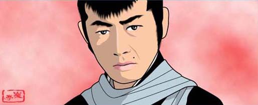 | <時代劇の小部屋>で荒野の素浪人を描いた。なんじゃい峠九十郎@三船敏郎さんを描いたのだが、やっぱりこの人が描きたい…と思って新しいコーナーを作ってしまった。ここでは、好きなキャラクター、好きな人に限定して絵と文章を書こうと思う。すごく偏っていると思うが、広い心でご覧いただきたい 鮎香之介…好きである。この役で大出俊さんの名前を覚えた。バサっとした前髪、元別所藩嫡男という出生を感じさせる品のよさ。薄いブルーのマフラーに白の五連発銃。剣の腕も悪くはないのに何故か竹光を落ち差しにし、黒一色の紋付きの着流し。素足に草履…これで声が渋かったら言うことないが、ちょっと高めの声も若々しいという印象を与える キザな感じは快傑ズバットも真青(笑)でも、お姉ちゃんには意外と弱い。峠九十郎が男の中の男という感じなので、彼のやや女性的な優しげな雰囲気が子供心に印象に残ったのだろうか。どこか、王子様っぽいからな 鮎香之介は<荒野の素浪人>の第二シリーズで非業の死を遂げる。現在放映中のものは第一シリーズのみのようだ。第二シリーズは秀作ぞろいだが、彼の死を見たくはない 願わくば、鮎香之介よ…その首のマフラーで、ほっかむりをするのは止めてもらいたい。頭巾のようにくるくる巻いて夜道を歩いていたが、あんまり似合わないと思う。せっかくのナイスな髪形と顔立ちが台なしである(2002.9.15) |