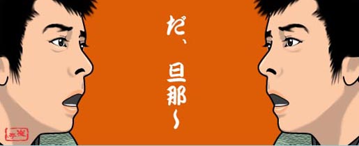 | 何と言っても、マイ・ファイバリット・キャラクター、焼津の半次を演じたお方である。鼻の穴を膨らませながら、早口でまくし立てる半次は、気が良くて憎めない渡世人。最初は月影兵庫に付いて回り、兵庫と別れた後は兵庫そっくりの(当たり前だ(笑)近衛十四郎さんが両方演じてるんだから)花山大吉と二人旅。結構腕は立つくせに、何かあると「だ、だんな〜〜〜」と助けを求める(笑)おまけに蜘蛛には滅法弱いし。半次のようなキャラクターは大変わかりやすく、子供には「だ、だんな〜〜〜」よりも半次が人気だった。たぶん、わたしが生まれて一番初めて心魅かれた時代劇キャラクターはこの半次。故に、品川隆二さんはわたしにとって特別な役者さんなのだ。 半次のインパクトがあまりに大きかったのか、その後代表作と言われるものが思い浮かばない。だが、シリアスなものをやっても素敵だし(なにせ、彼の顔は基本的には二枚目である)、また、ゲスト出演しているとき半次チックなキャラを演じておられたりすると、それだけで嬉しくなってしまう。<江戸を斬るII>にゲスト出演されていたときは、強請、騙りをする割には人がいい無頼者、その名も[半次]だった(笑)焼津の半次が江戸に流れてきて、貧乏ながらも、気ままに暮してこうなったのだろうか(笑)なんだか、そんな想像をかき立ててくれるキャラだったな。うわ〜、見て得したな〜と心から思ったものである お顔を拝見して、声を聞くだけで心が元気になってくる。品川さん、どうかいつまでもお元気で、できたら、隠居した半次なんか演じて下さいね。お墓の前で、「旦那がおからの食べ過ぎでおっちんじまってから、ずいぶんとたっちまったな…まあ、旦那、今日は俺と一杯やろうよ…」なんてね(2003.8.9) |